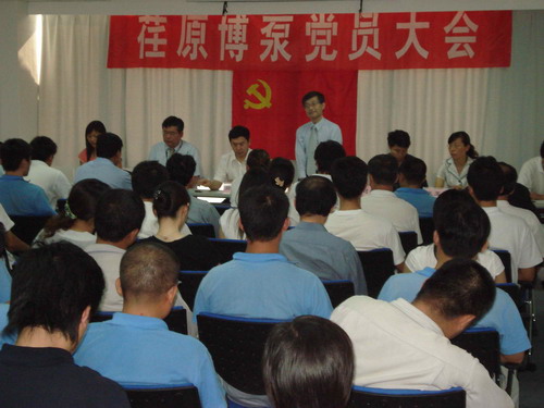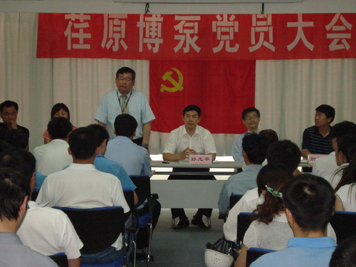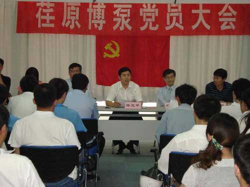 本次黨員大會(huì)由黨總支副書記姜作棟同志主持,他首先介紹了黨組織機(jī)構(gòu)的組成:張玉琴同志任黨總支書記,姜作棟同志任黨總支副書記,李正民同志、劉擁民同志、王興春同志分別任統(tǒng)戰(zhàn)委員、組織紀(jì)檢委員、文體宣傳委員。荏原博泵黨總支下設(shè)管理、生產(chǎn)、質(zhì)量和業(yè)務(wù)技術(shù)四個(gè)黨支部,管理黨支部書記由邱建剛同志擔(dān)任,生產(chǎn)黨支部書記由宋遵民同志擔(dān)任,質(zhì)量黨支部書記由郝圣同志擔(dān)任,業(yè)務(wù)技術(shù)黨支部書記由梁文運(yùn)同志擔(dān)任。各黨支部通過(guò)民主選舉選出了支部委員。在會(huì)上,黨總支書記張玉琴同志向全體黨員提出要求,一是加強(qiáng)學(xué)習(xí),提高素質(zhì);二是增強(qiáng)黨性,努力工作;三是加強(qiáng)領(lǐng)導(dǎo),發(fā)揮作用。著重強(qiáng)調(diào)了全體黨員不僅要有較高的政治素質(zhì),更要有很強(qiáng)的業(yè)務(wù)能力和技術(shù)水平。要一如既往的發(fā)揮黨員的先鋒模范作用,以企業(yè)經(jīng)濟(jì)發(fā)展為中心任務(wù),身先士卒,帶頭努力干好工作,在營(yíng)造團(tuán)結(jié)和諧的工作氛圍中發(fā)揮作用。公司總經(jīng)理孫龍平同志在黨員大會(huì)上代表行政領(lǐng)導(dǎo)班子作了重要發(fā)言,指出目前公司正處在打基礎(chǔ)的關(guān)鍵時(shí)期,邊建設(shè)、邊生產(chǎn)、邊供貨、邊發(fā)展。黨組織要充分發(fā)揮政治核心作用,領(lǐng)導(dǎo)工會(huì)、共青團(tuán)等群眾組織,團(tuán)結(jié)凝聚廣大員工,貫徹黨的方針政策,促進(jìn)企業(yè)健康發(fā)展。