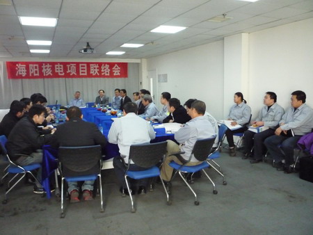 2010年1月14―15日,由山東核電公司李石學部長、國核電力設計研究院項目設計總工程師王麗華、中國電能成套設備有限公司核電部項目主管徐智淵等十人組成的專家組來公司召開首次聯(lián)絡會。
