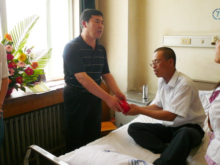 6月24日,公司總經(jīng)理孫龍平,黨總支書(shū)記張玉琴及人力資源部部長(zhǎng)姜作棟等一行,專程到德州人民醫(yī)院,將寄托著廣大員工深情厚誼的28150元捐款送到了孫富強(qiáng)的病榻前。鼓勵(lì)他要積極樂(lè)觀,堅(jiān)定戰(zhàn)勝病魔的信心,期盼著他早日康復(fù),重返工作崗位。