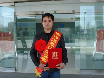 4月30日,淄博高新區(qū)勞動模范和先進(jìn)工作者表彰大會在火炬大廈隆重舉行,我公司王光學(xué)同志被授予高新區(qū)“勞動模范”,并上臺領(lǐng)獎。
