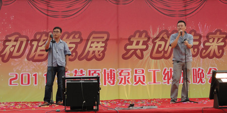 舞蹈《開門紅》寄托著荏原博泵員工對公司發(fā)展前景的美好期盼,展示了公司女職工的風采。20多名復員軍人用一首《咱當兵的人》抒發(fā)了他們保家衛(wèi)國、貢獻企業(yè)的豪情與壯志;研發(fā)部、技術部員工帶來的歌曲《跳起來》,展示了年輕人的青春與活力;質(zhì)量保證部員工在部長岳東海帶領下,演唱了歌曲《相親相愛一家人》,演繹著荏原博泵大家庭的親情、友情。友情樂隊帶來的動感十足的歌曲,更是將晚會的氣氛烘托到高潮。