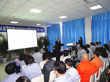 大會由公司副總經(jīng)理姜作棟先生主持,公司總經(jīng)理王正軍先生與大家共同分享了公司2015年經(jīng)營成果并對2016年的工作計劃為大家作了說明。